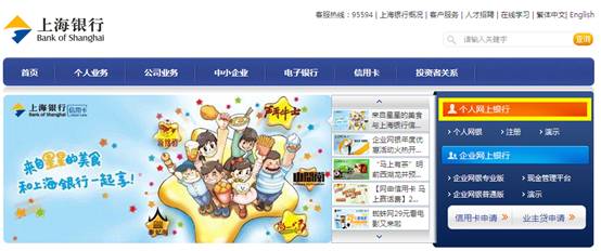1. 登錄上海銀行網(wǎng)站(http://www.bankofshanghai.com/),選擇個人網(wǎng)上銀行