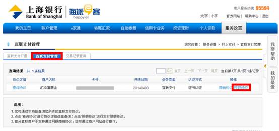 4. 在直聯(lián)支付管理中選擇匯添富基金,點擊“限額修改”