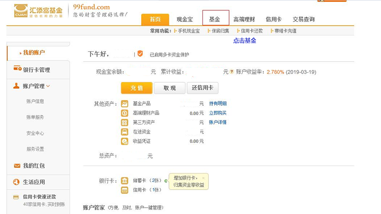 進(jìn)入首頁(yè),點(diǎn)擊基金。