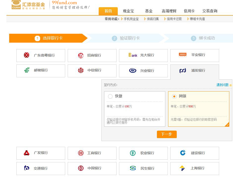 第二步 選擇浦發(fā)銀行卡,點擊下一步