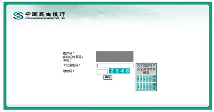 3.1跳轉(zhuǎn)至民生銀行頁面,輸入銀行卡密碼、驗證碼,點擊"確定".