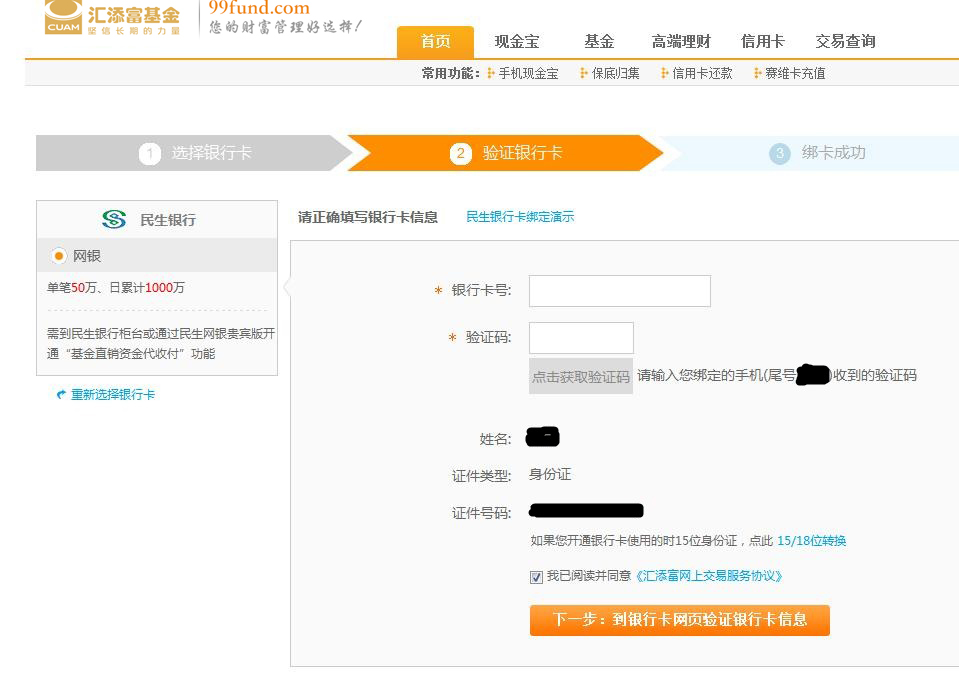 第三步 填入您的銀行卡信息,完成銀行卡驗證