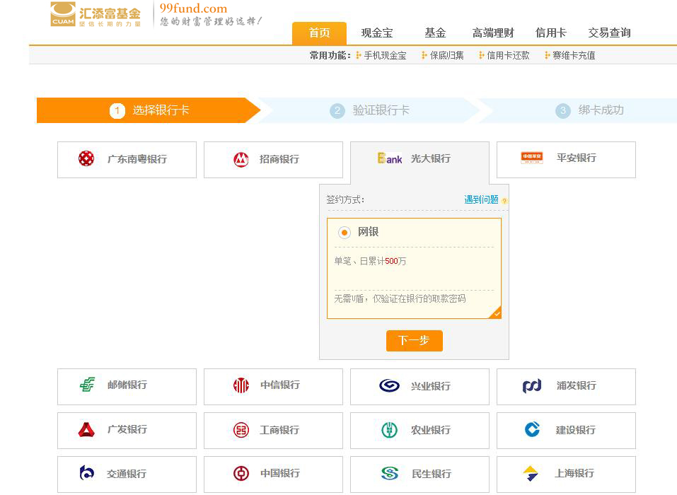 第一步 登陸匯添富官網(wǎng),點(diǎn)擊“首頁(yè)”-“銀行卡管理”,選擇“添加銀行卡”
