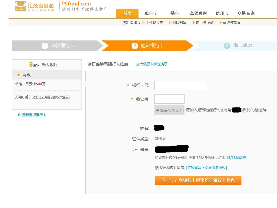 第三步 填入您的銀行卡信息,完成銀行卡驗(yàn)證