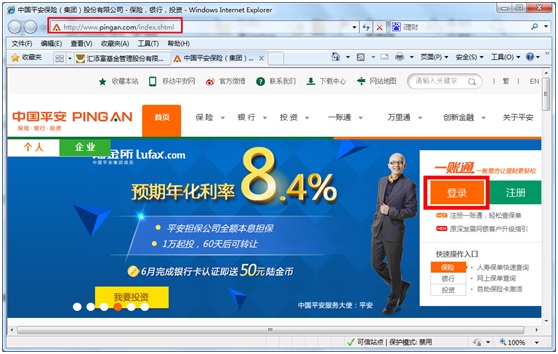 1. 登錄平安銀行官網(wǎng)(http://www.pingan.com) 點(diǎn)擊“登錄”按鈕