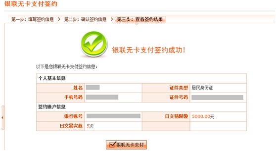 7. 銀聯(lián)無卡簽約成功