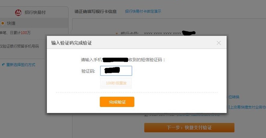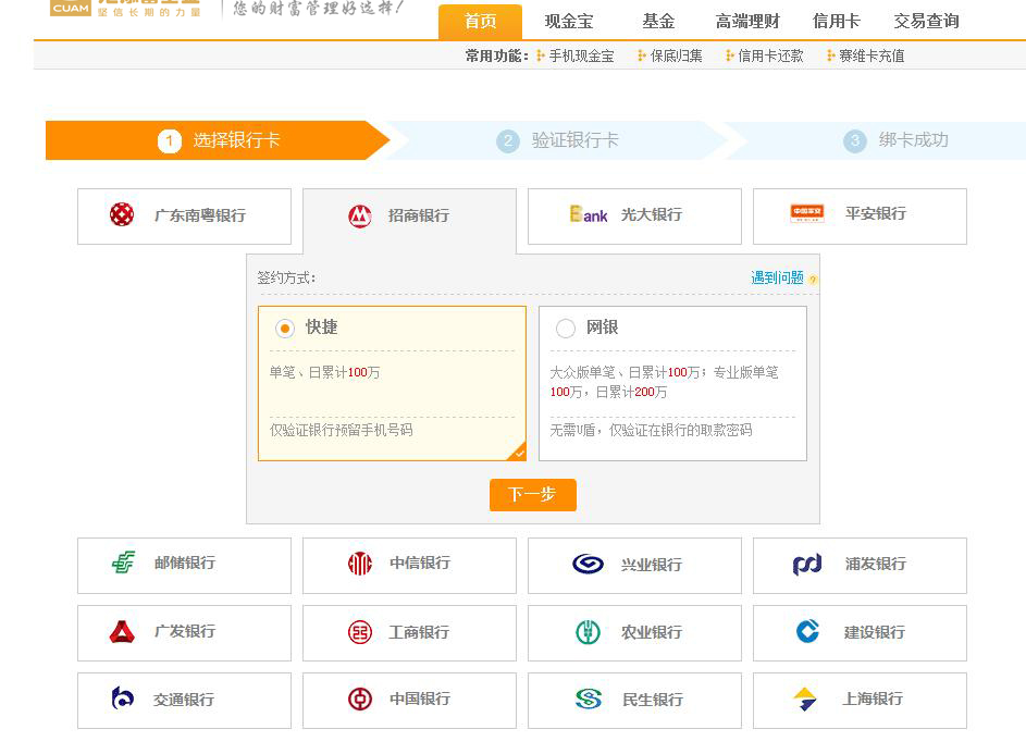 以招行快捷為例,其余銀行類似。