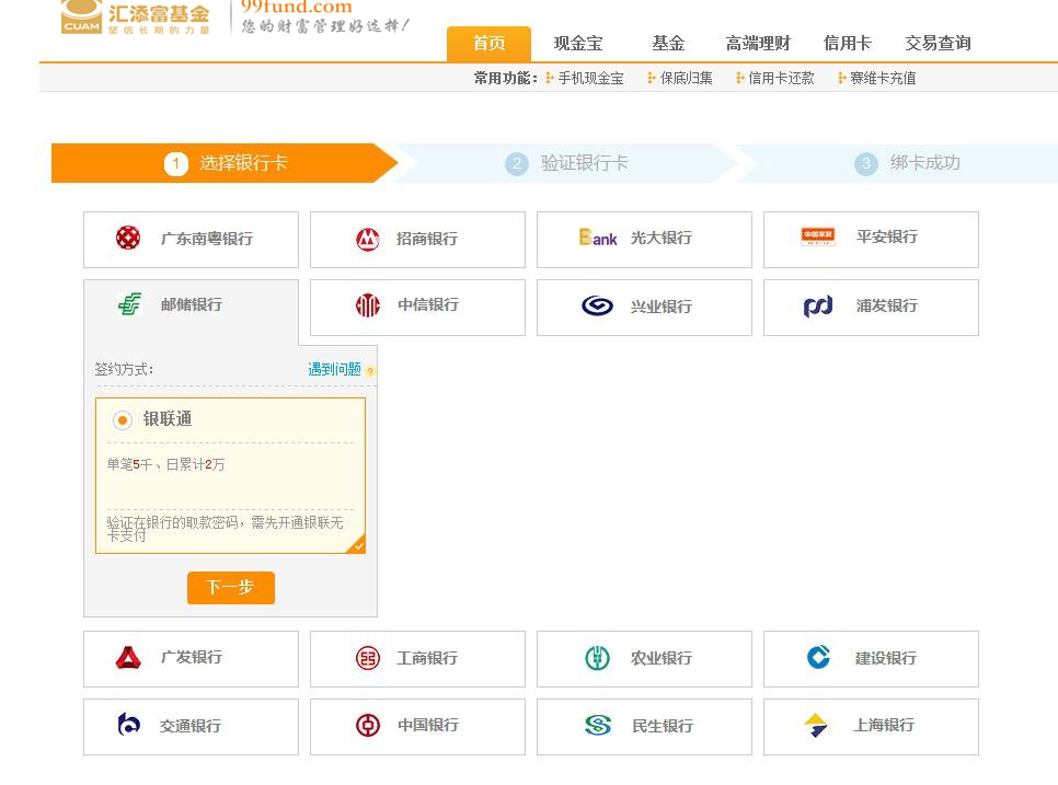 2.點擊“郵儲銀行”,選擇“銀聯(lián)通”