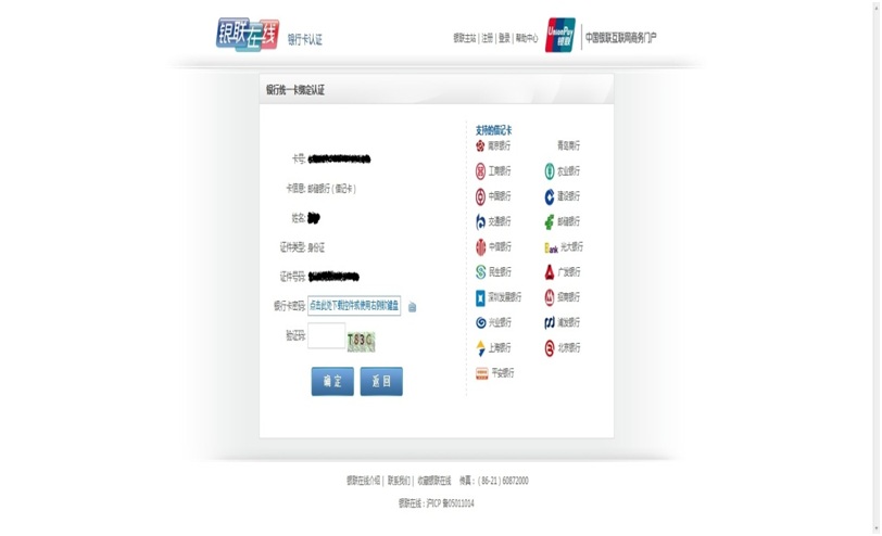 5.跳轉(zhuǎn)“銀行統(tǒng)一卡綁定認(rèn)證”頁面,輸入銀行卡密碼和驗證碼,點擊“確定”