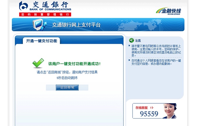 6、提示“一鍵支付功能開通成功”,點擊“返回商城”。