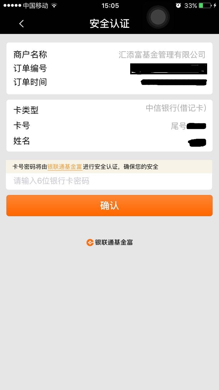 4、確認(rèn)安全認(rèn)證的信息無誤之后,輸入銀行卡密碼。點(diǎn)擊“確認(rèn)”。