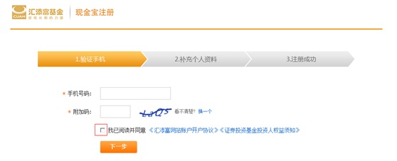 第二步:輸入“手機(jī)號(hào)碼”、“附加碼”、“驗(yàn)證手機(jī)號(hào)碼 ”,并勾選協(xié)議點(diǎn)擊“下一步”